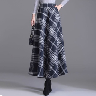 Saia xadrez longa de l de cintura alta feminina saia maxi