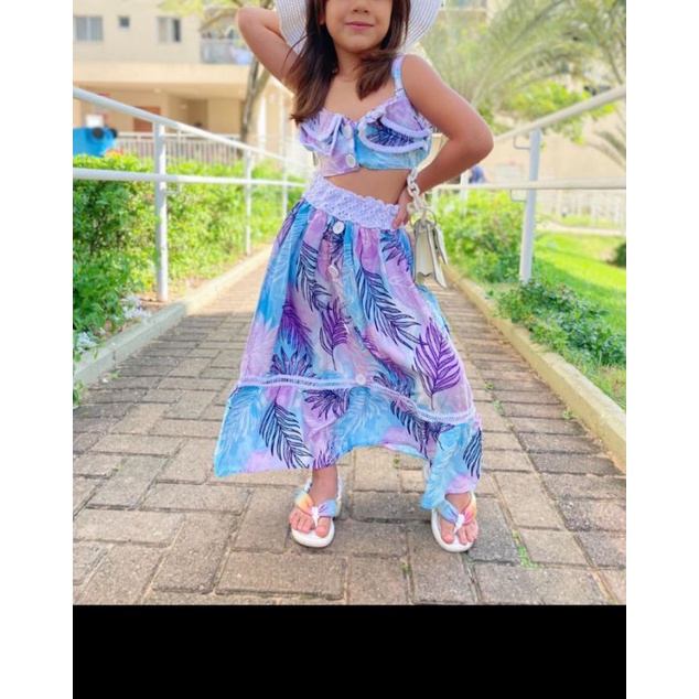 Saia longa com clearance cropped infantil, Conjunto Cropped E Saia Longa Menina Infantil Blogueirinha Lan amento clearance