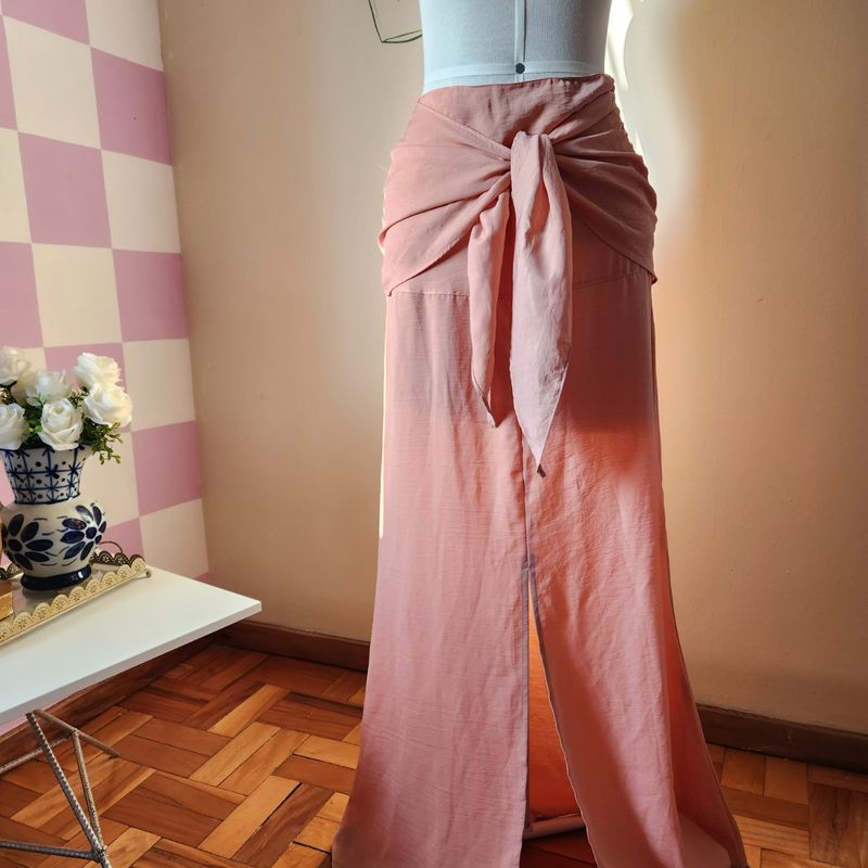 Saia longa com clearance amarração, Saia Longa com Amarra o Na Cintura Acompanha Forro e Possui Fenda clearance