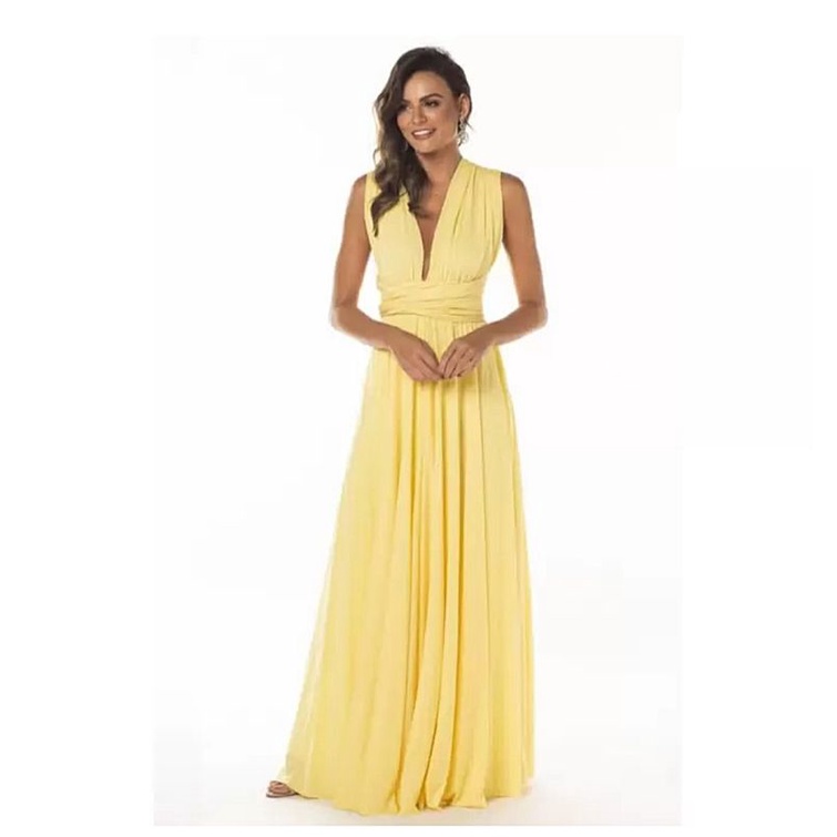 Vestido Feminino Longo amarelo pastel De Festa Multiuso Madrinhas