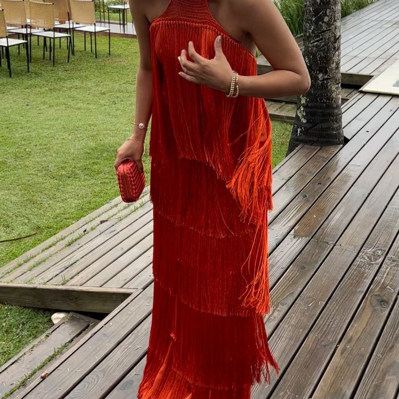 Vestido de festa clearance longo com franjas, Vestido de Festa Longo de Franjas Vestido Feminino Sob Medida Usado 77087551 enjoei clearance