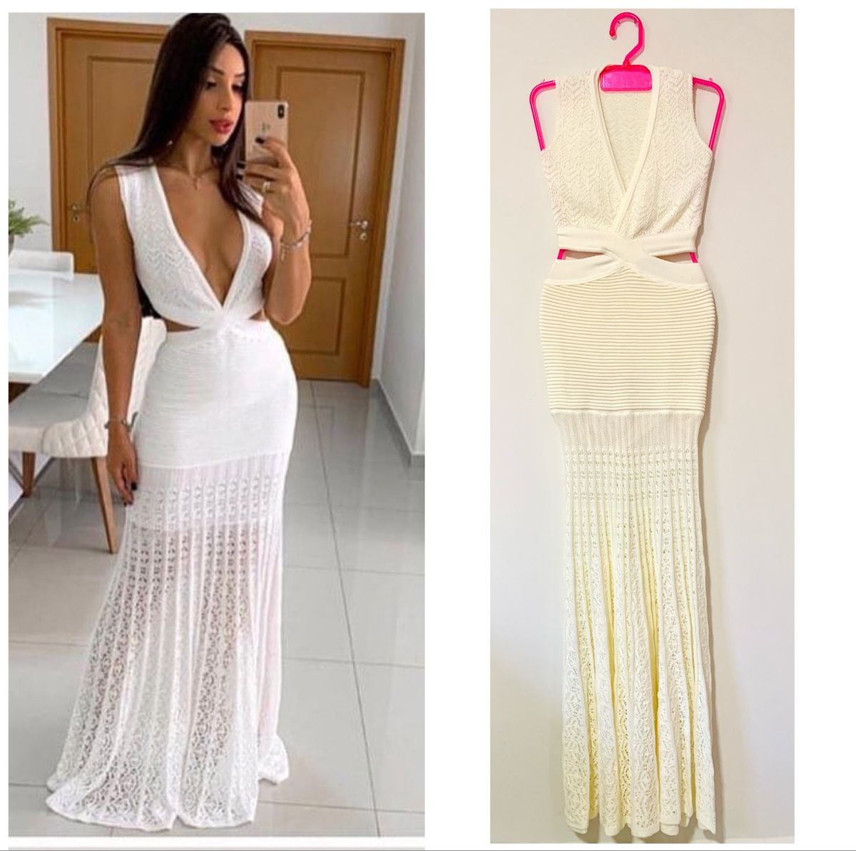 Vestido Longo com Fenda Decote Cintura Cor Creme Cor Champanhe Tamanho nico Vestido Feminino Nunca Usado 49591637 enjoei