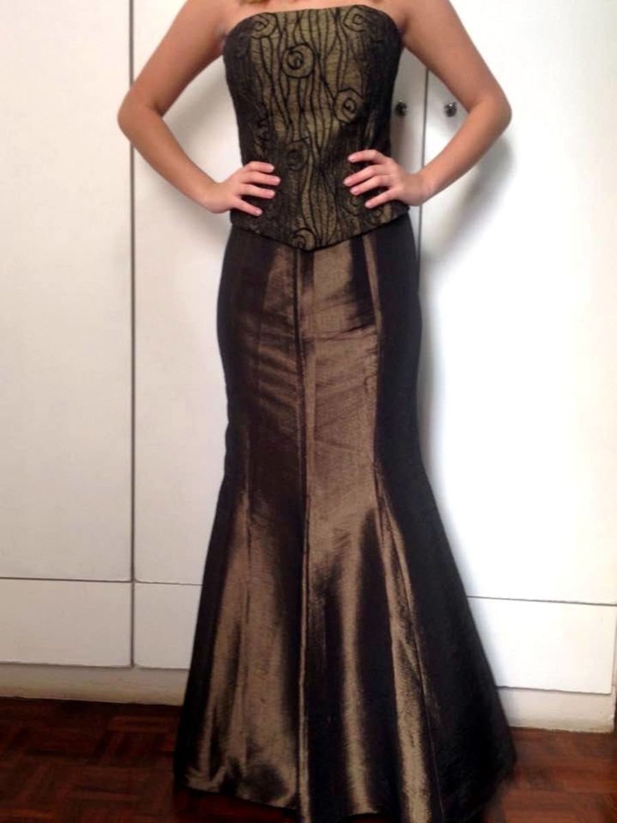 Vestido de festa longo corpete em lurex saia em pregas alfaiataria