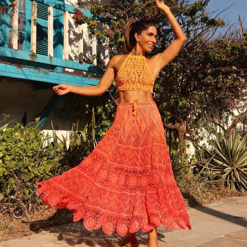 Saia longa de clearance croche com cropped, Saia Longa Laranja de Croch Saia Feminina Sb Store Nunca Usado 69572821 enjoei clearance