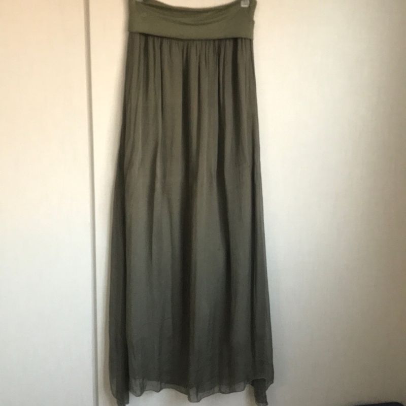 Saia Longa Musseline Toque de Seda Verde Oliva Made In Italy Tamanho 36 Saia Feminina Made In Italy Usado 87961824 enjoei
