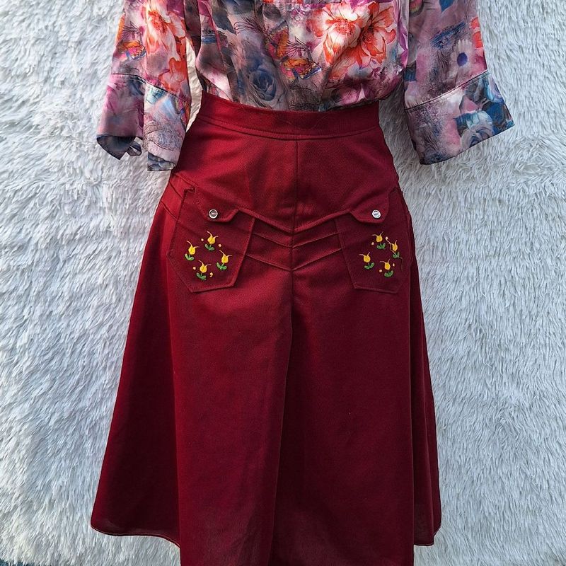 Saia Vinho Midi Bordado Longa Midi Brech Feminino Feminina