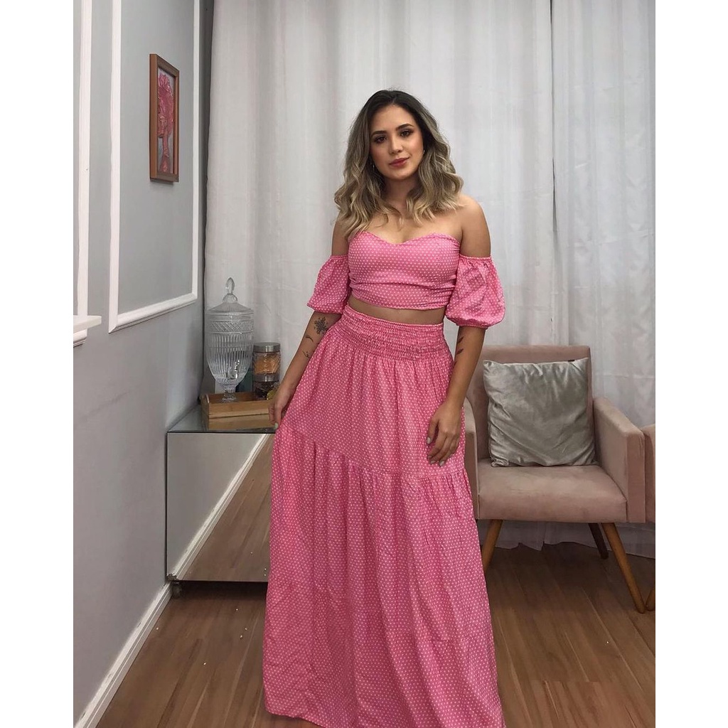 Saia longa com clearance ciganinha, Conjunto Feminino Saia Longa com Cropped Ciganinha em Lastex clearance