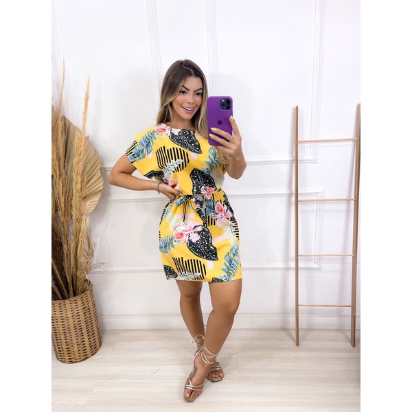 vestido curto estampado de crepe toque de seda Shopee Brasil