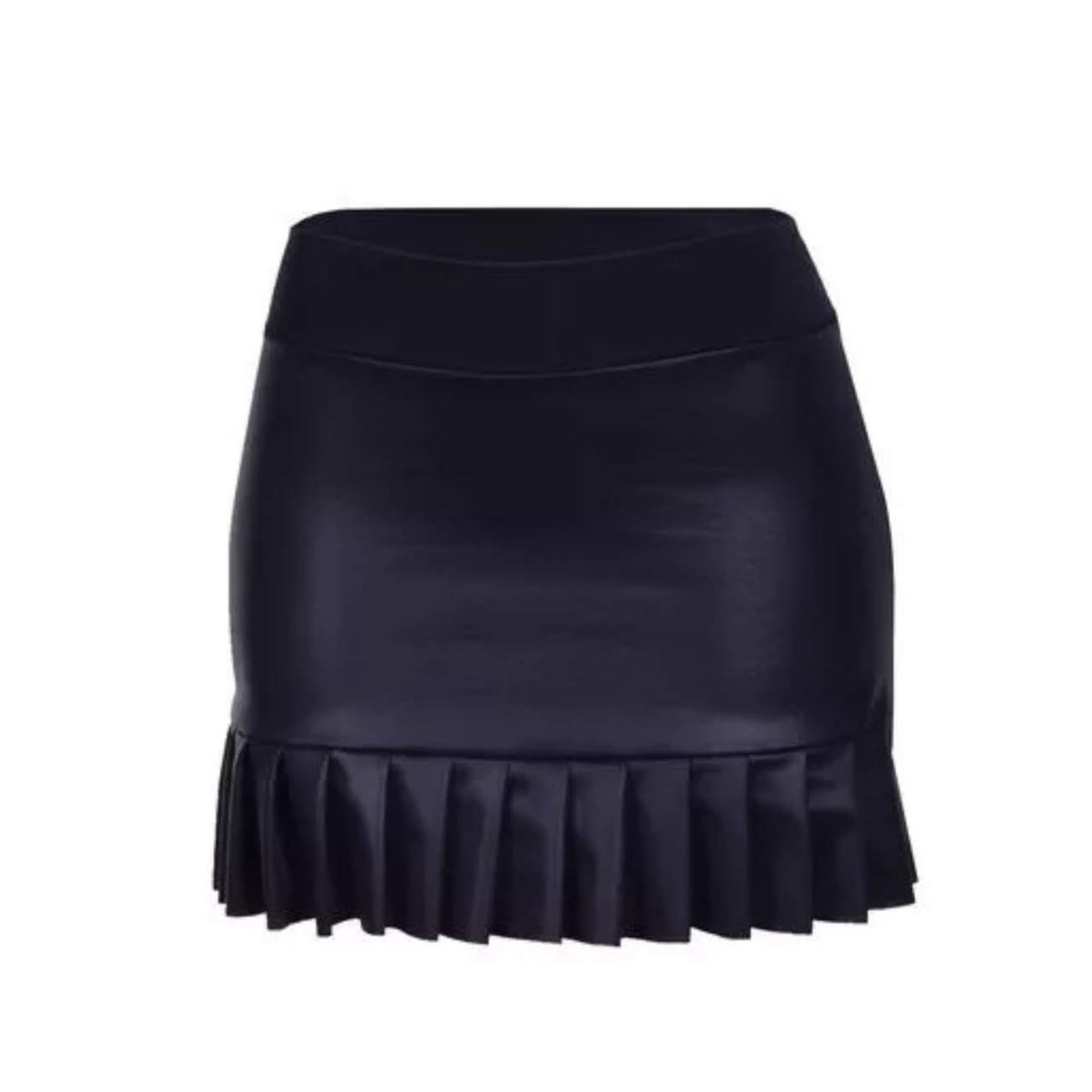 Saia Curta Cirre Couro Fake Babado