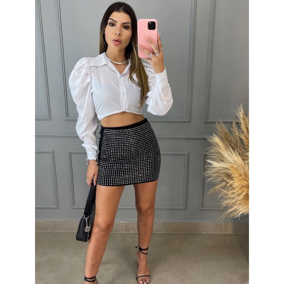 Saia preta com clearance strass, SAIA JEANS COM STRASS clearance
