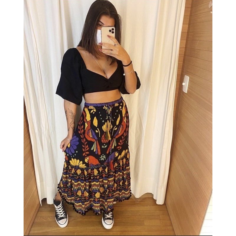 Saia clearance farm preta, Compre Farm Saia Midi de Viscose Amaz nia Preta Online clearance