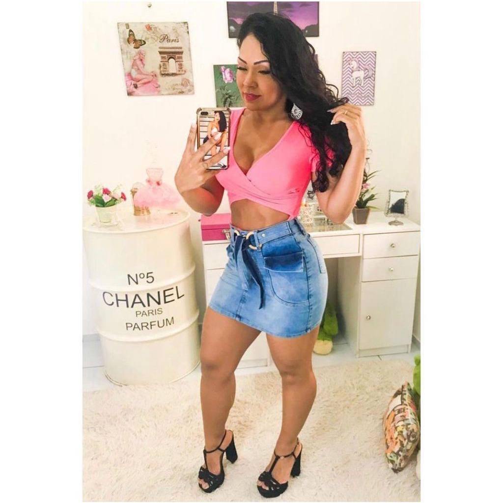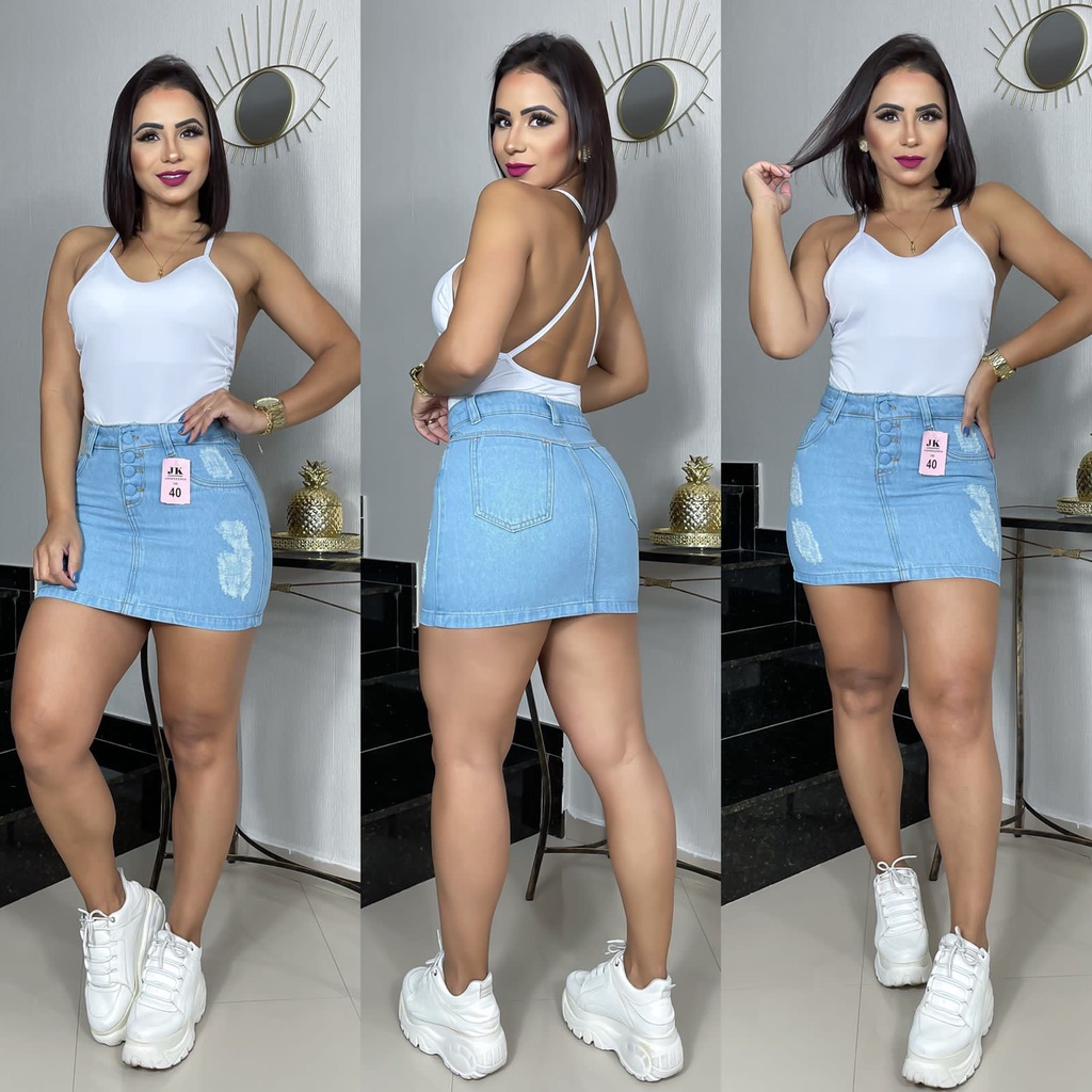 Mini Saia Jeans Moda Blogueira Cintura Alta Luxo Hot Pant
