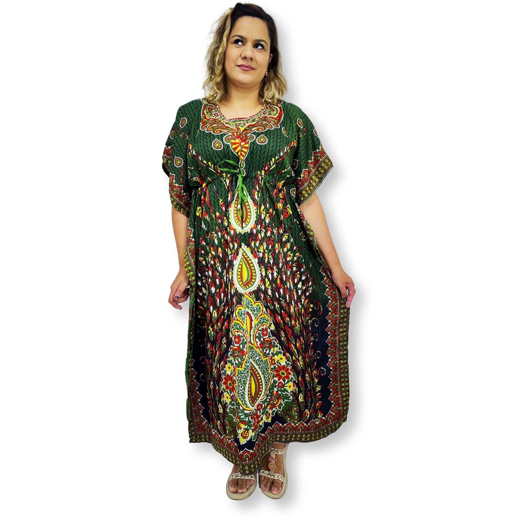 Vestido Kaftan Longa Estampa tnica Moda Indiana Hippie Boho Ajust vel
