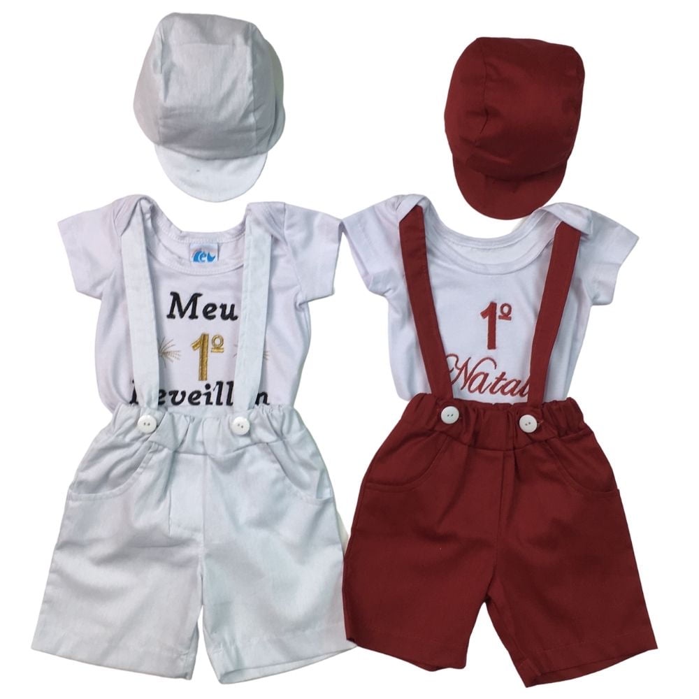 Kit Conjunto bebe menino natal e ano novo Moda Beb Pequeno