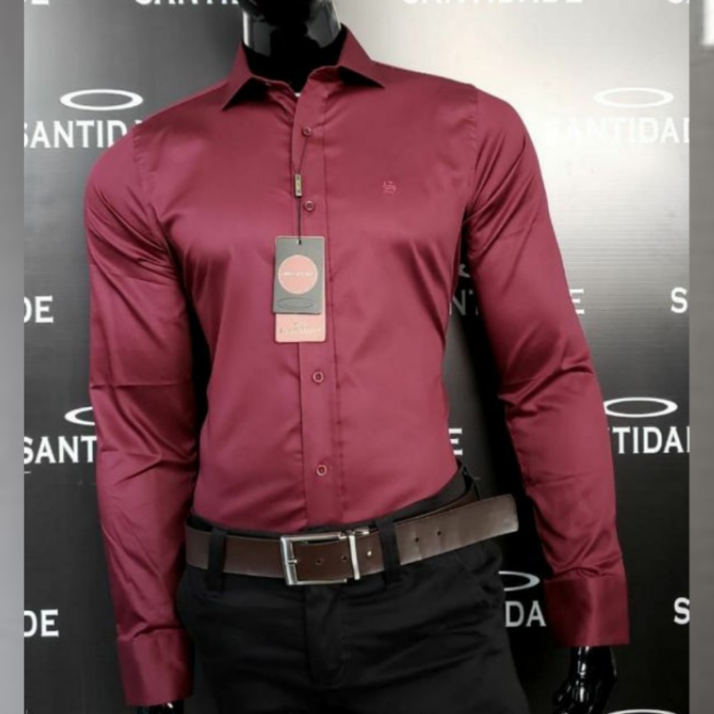 Camisa Masculina Social Slim Linha Deluxe Camisaria Santidade Tam.G