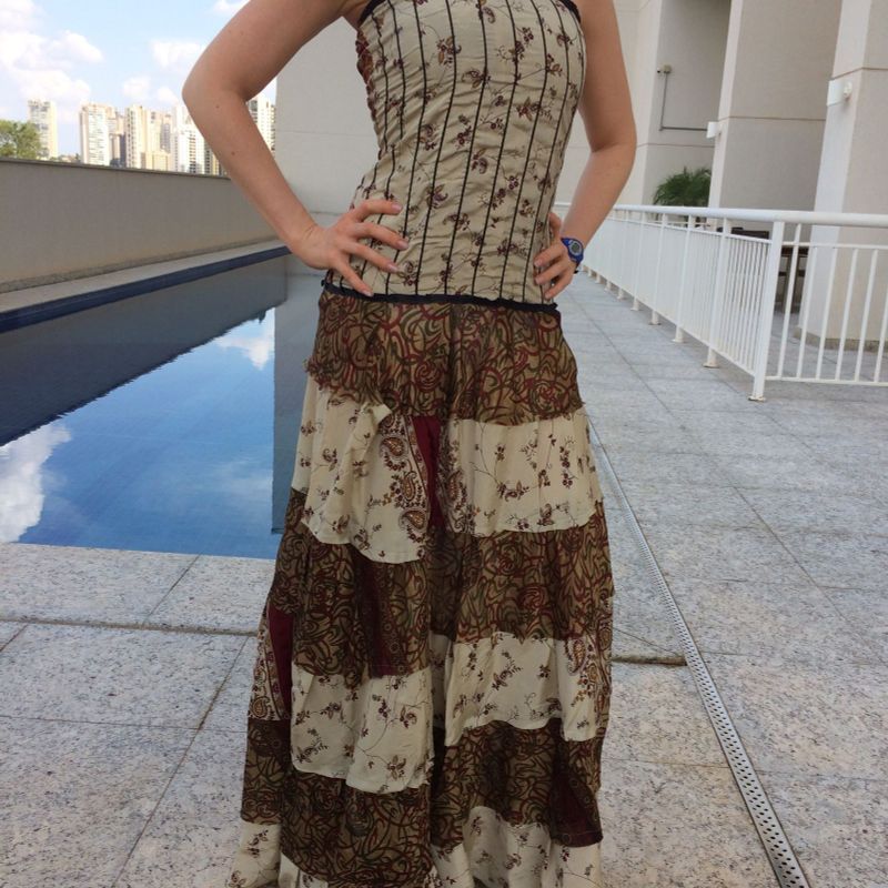 Vestido Longo Cetim Patchwork Vestido de Festa Feminino Estilista Indiano Usado 30453405 enjoei