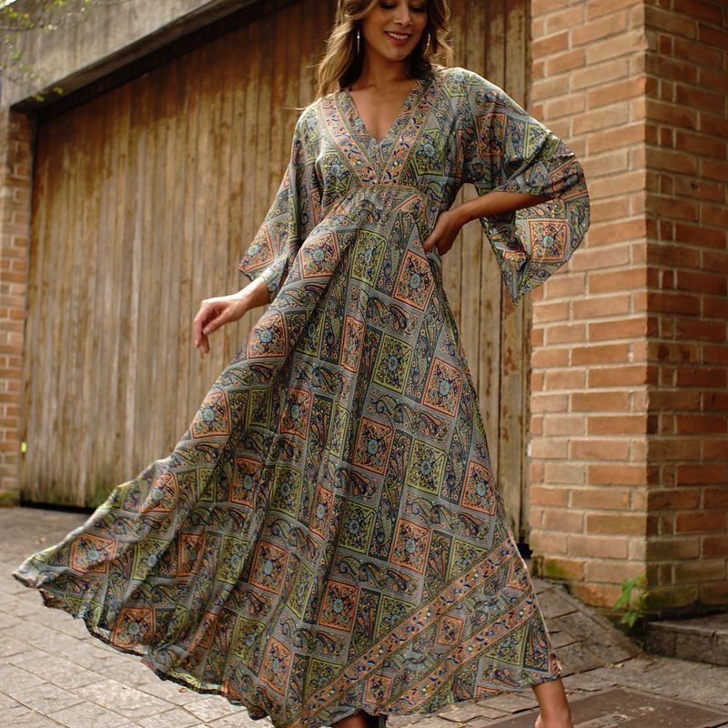 Vestido Longo de Manga Longa Vestido Feminino Indiano Nunca Usado 90264670 enjoei