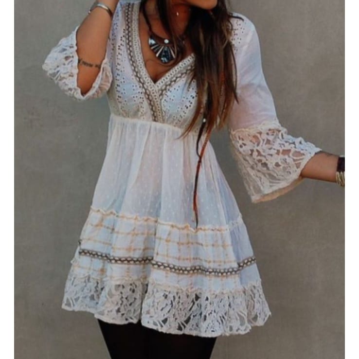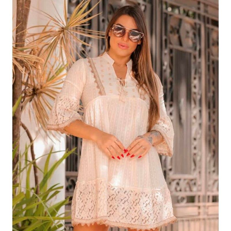 Vestido Bata Indiana Bordada Moda Feminina Com Renda Boho