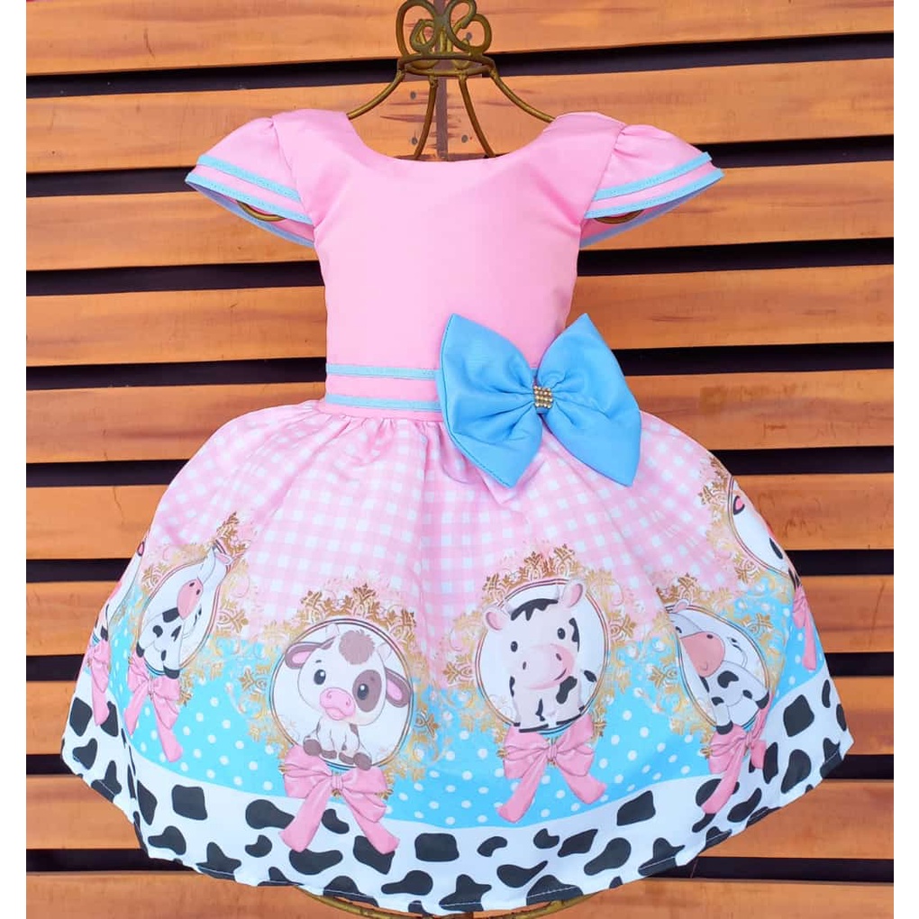 Vestido Tem tico Infantil Festa Fazendinha Linda fofa rosa bebe vaquinha baby