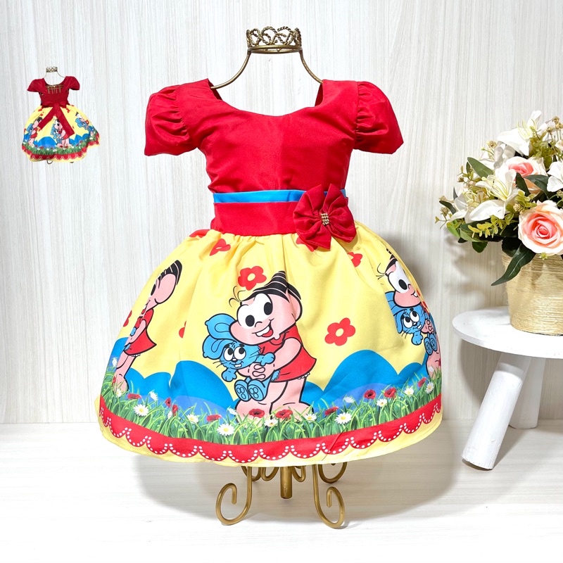 Vestido de festa clearance turma da monica, Vestido Monica Turma Da M nica Tem tico Infantil Festa clearance