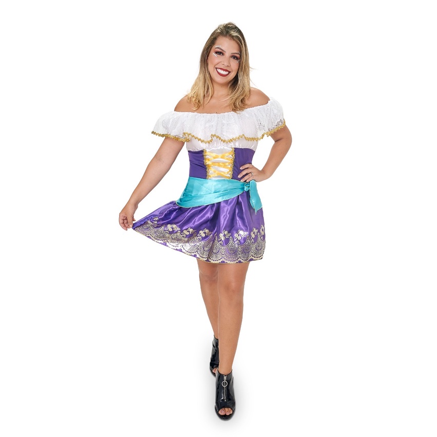 Fantasia adulto Cigana Esmeralda carnaval luxo