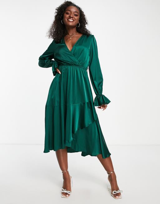 Vestido midi verde esmeralda con detalle cruzado de sat n exclusivo de In The Style