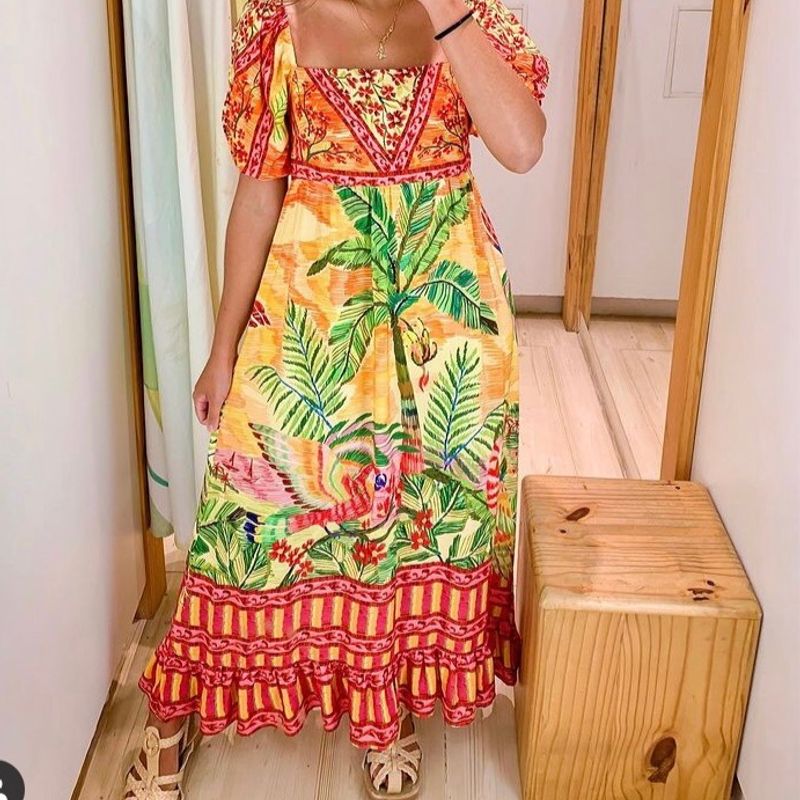 Vestido longo manga florenza farm Babadotop