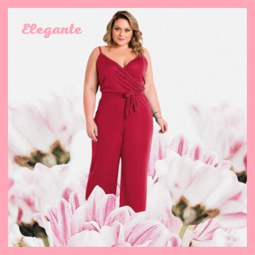 Macacão vermelho plus clearance size, Macac o Plus Size Feminino Longo com Alcinhas e Faixa de Amarra o clearance