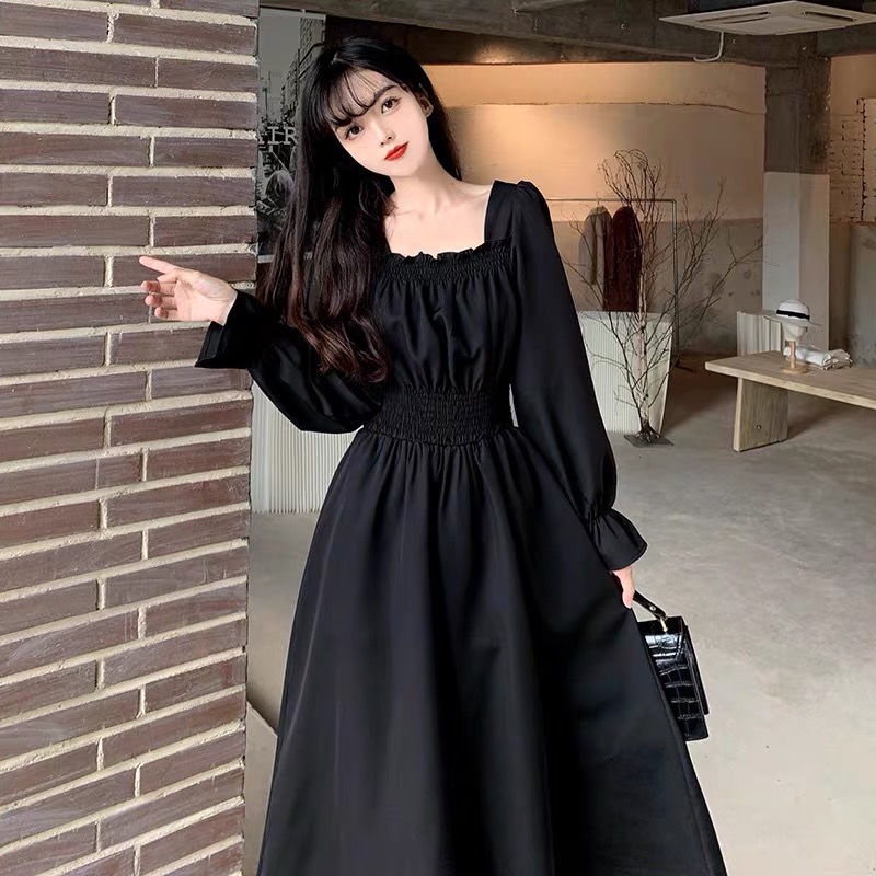 Vestido Preto vintage Quadrado Pesco o Feminino Super Fada Temperamento casual