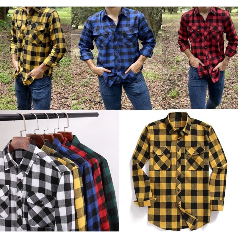 Camisa Casual Xadrez Masculina Manga Longa Festa Junina Moda Jovem