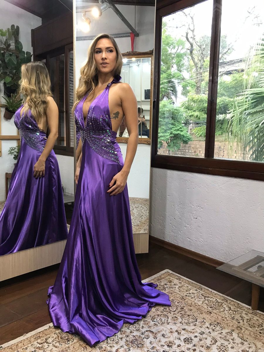 Vestido Longo Roxo com Bordado em Pedrarias Vestido de Festa