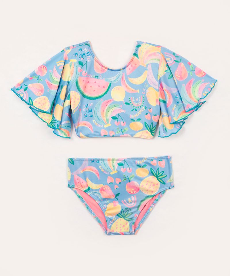 biqu ni infantil tucanos com babado prote o uv amarelo C A