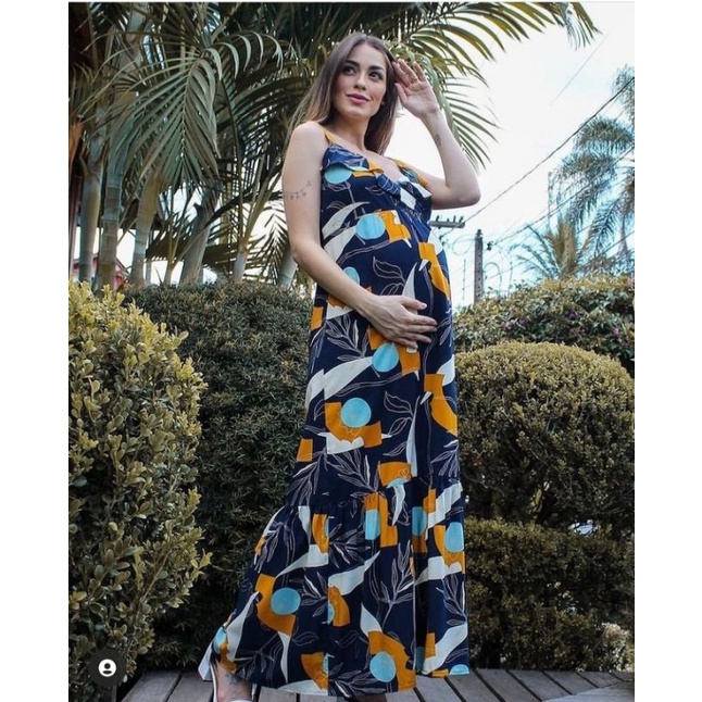 Vestido longo floral clearance gestante, Vestido longo gestante amamenta o gr vida Shopee Brasil clearance