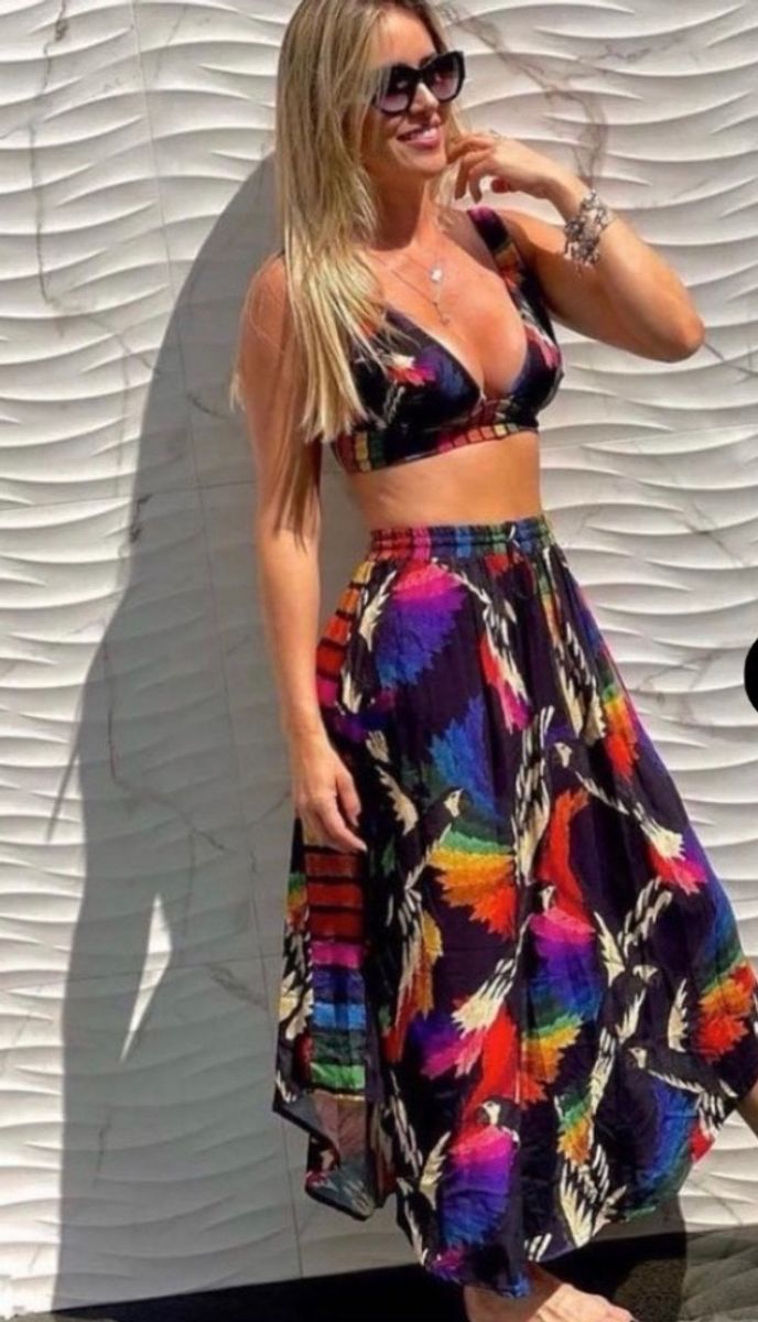 Saia Farm Arco ris Tucano Preta Midi Desej o Perfeita El stico Na Cintura Saia Feminina Farm Nunca Usado 69893859 enjoei