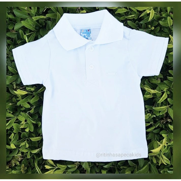 Camisa Polo Infantil Roupa de Beb Menino Branca Batizado ou Festa