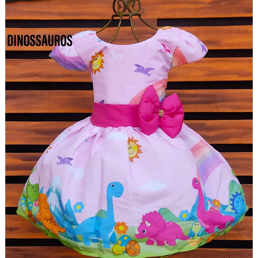 Vestido clearance de dinossauro, Vestido Estampado de Dinossauro Marinho Infantil em At 6x Sem Juros clearance