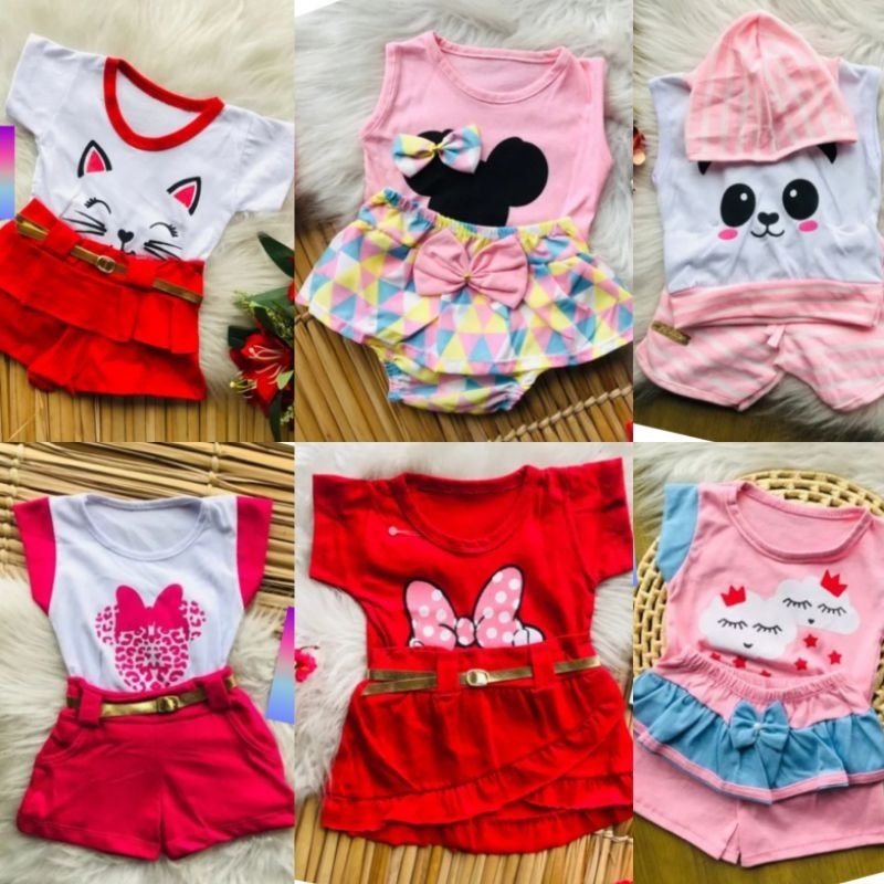 kit 6 pe as de roupa femininas para beb 3 CONJUNTOS 0 a 3 meses