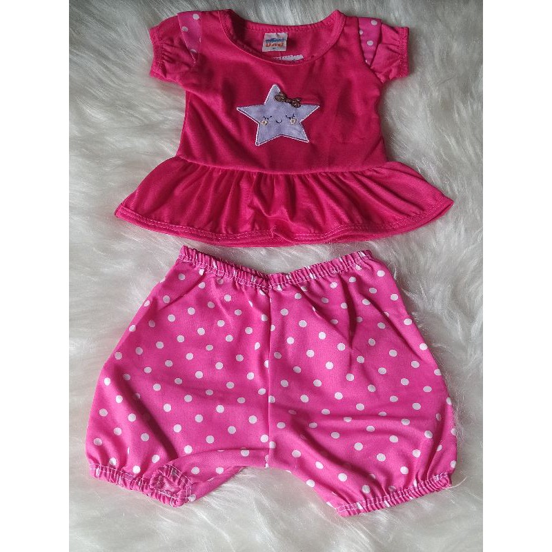 Conjunto infantil bebe menina feminino roupas de beb short e camisa com bordado e babadinho 6 a 9 meses