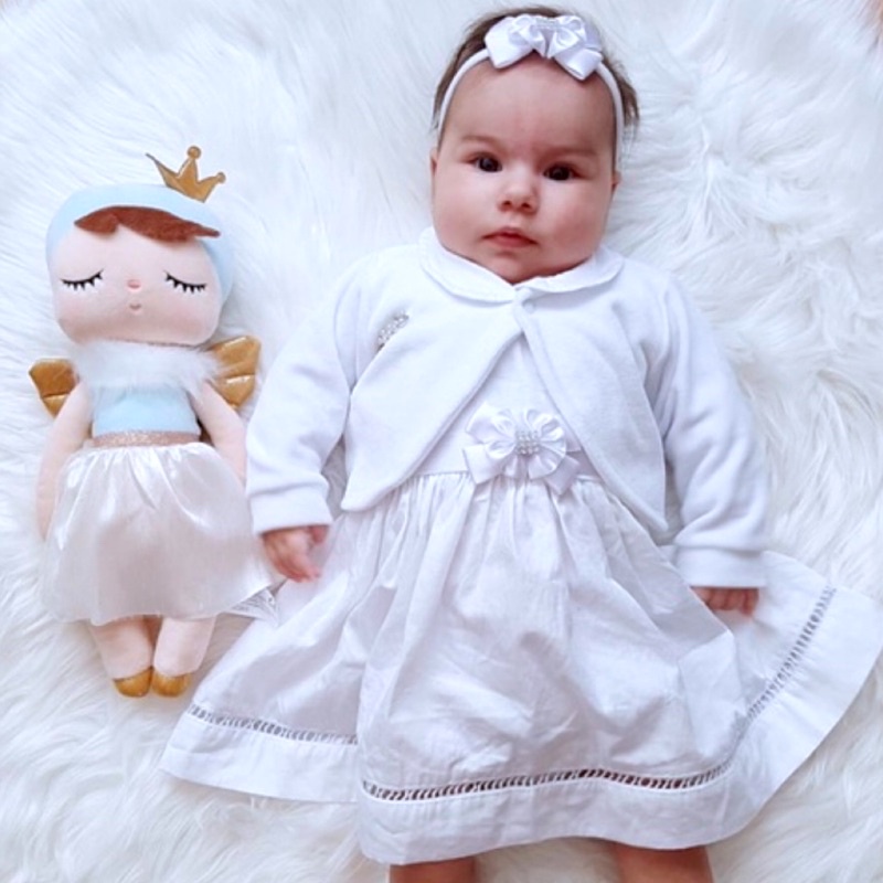 Vestido de Beb Batizado Branco Menina com Bolero e Tiara 3 Pe as