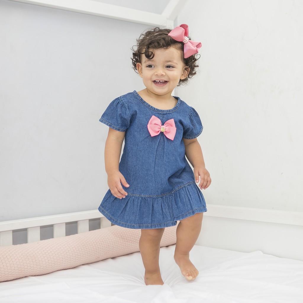 Vestido jeans Beb menina 3 6meses e 6 12meses Shopee Brasil
