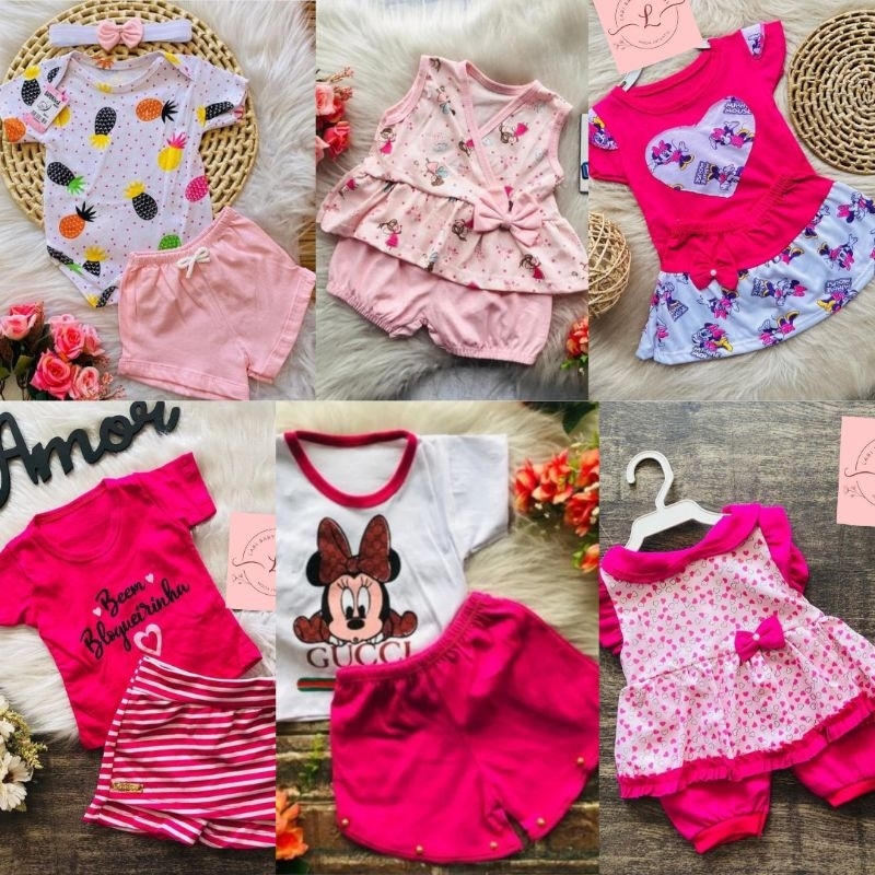 kit 6 pe as de roupa femininas para beb 3 CONJUNTOS 0 a 3 meses