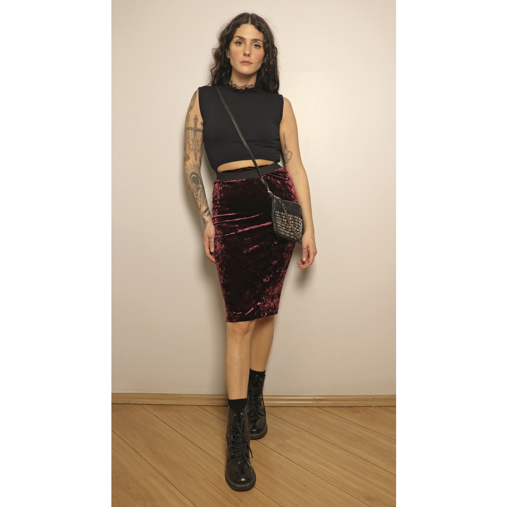 Saia Midi Ros Veludo Molhado T Shirt Looks Looks femininos