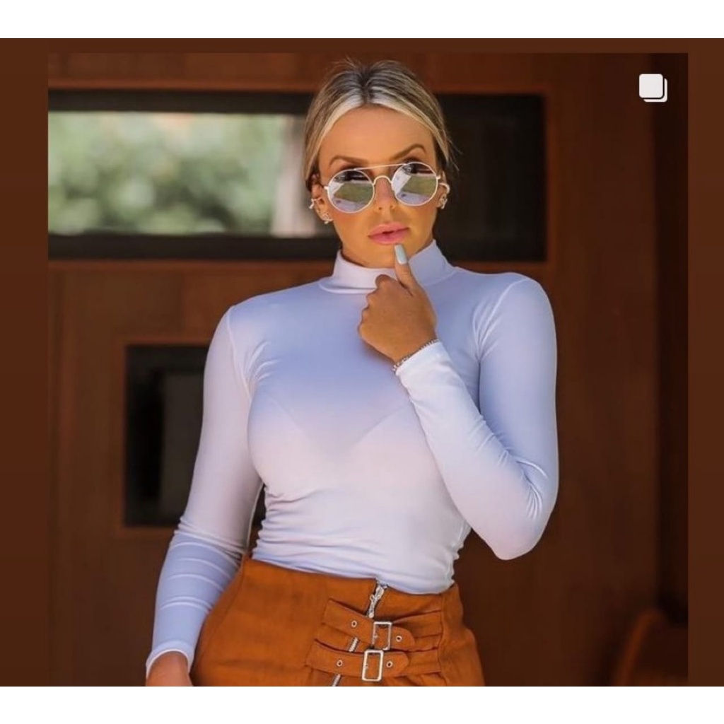 Blusa Feminina Manga Longa Gola Alta Tecido Suplex Cores Branca Marshalla Blusinha Segunda Pele Feminina 2022