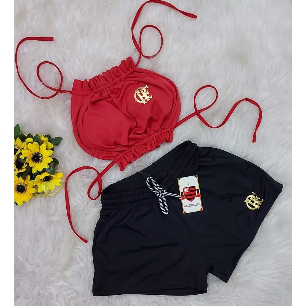Conjunto Time Flamengo Modinha Feminina Cropped Shorts 2023
