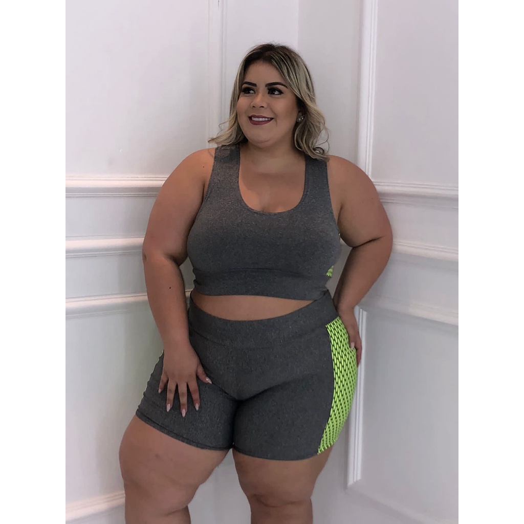 Roupa malhar plus clearance size, Conjunto de Academia Plus Size Feminino Top Regata e Short Roupa clearance