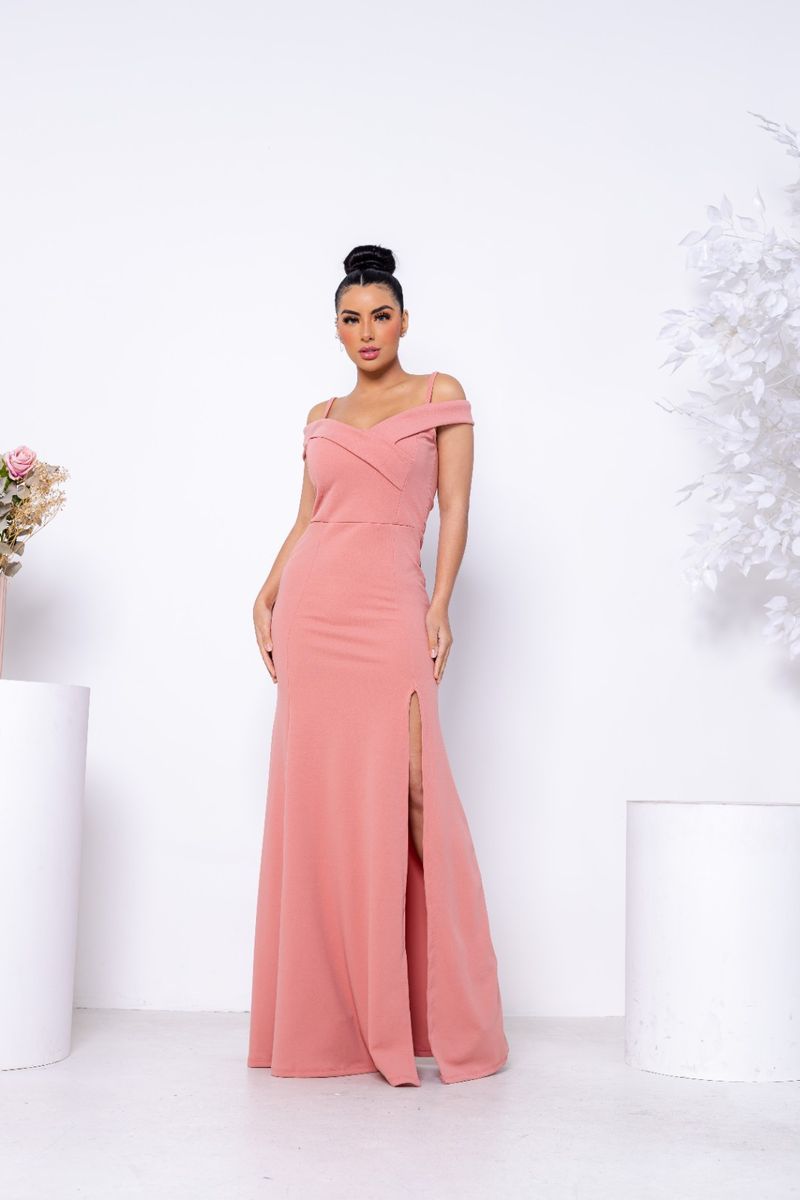 Vestido de madrinha de casamento clearance cor nude, Vestido Longo Rosa Nude Festa Fenda Madrinha Casamento Noiva clearance