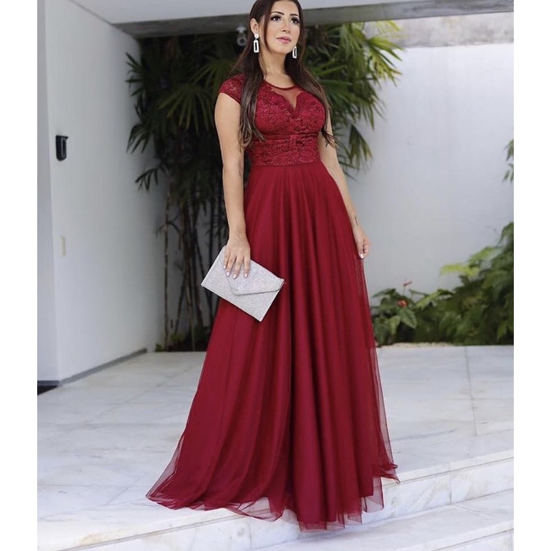 Vestido de madrinha clearance evangelico, Vestido longo madrinha evang lica crist manga curta guipir R clearance