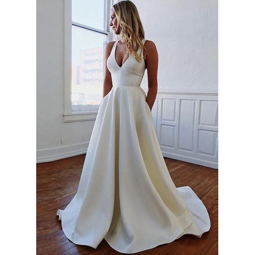 Vestido De Noiva Com Bolso Frente Decote V Al a Fina Costa