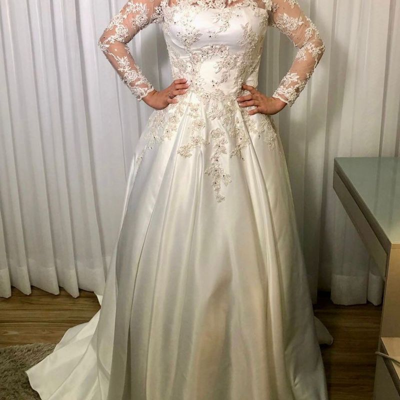 Vestido de Noiva Renda cetim cristais Vestido de Festa Feminino Noiva Usado 65333385 enjoei