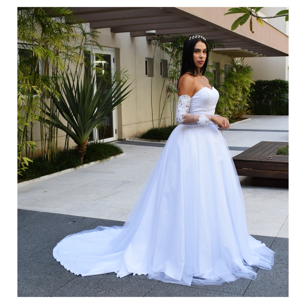 Vestido de noiva com cauda clearance longa removivel, Vestido de Noiva com cauda e Manga Remov vel Shopee Brasil clearance